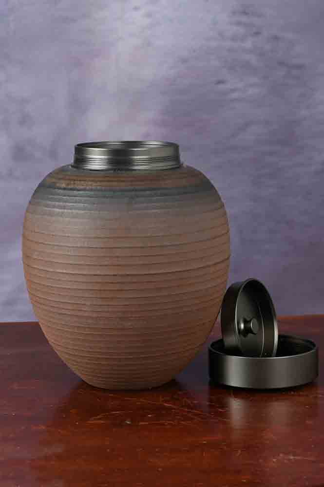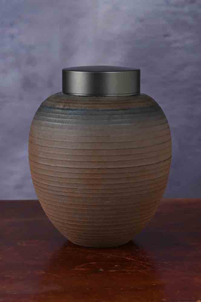 Die Keramikurne Erdenlicht vereint schlichte Form mit stiller Würde. Ihre warmen, erdnahen Farbtöne und die feine, umlaufende Linienstruktur erinnern an die Spuren der Zeit – an gelebte Momente, die sich in der Erinnerung bewahren.