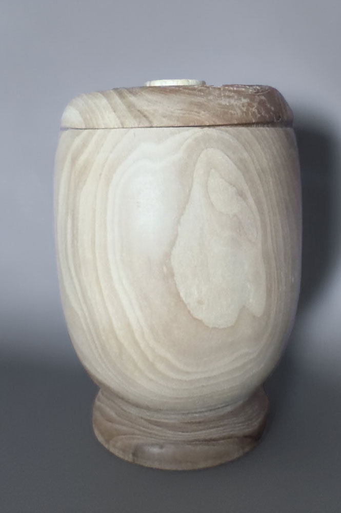 Aus heimischem Apfelholz, bekannt für seine feine Maserung und warme Bernsteinfärbung. Jede Urne wird handwerklich gefertigt und mit einem dünnen Leinöl-Finish veredelt, das die Holzstruktur schützt und zugleich natürlich atmen lässt. -
