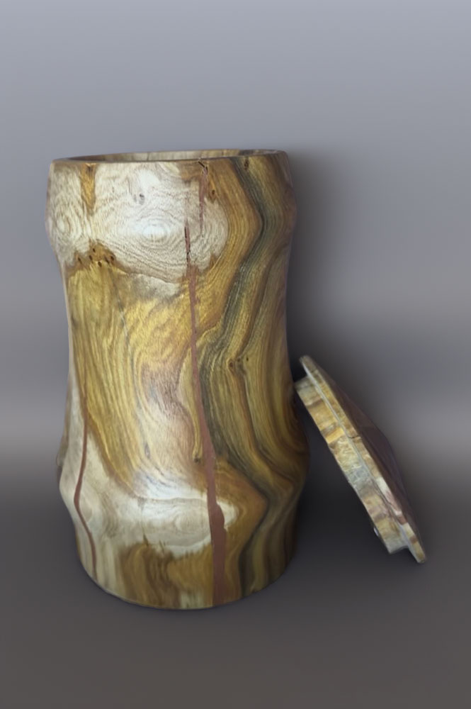 Unsere handgefertigte Urne aus Essigbaumholz vereint natürliche Schönheit, feine Handwerkskunst und einen respektvollen Abschied in einem einzigartigen Kleinod: